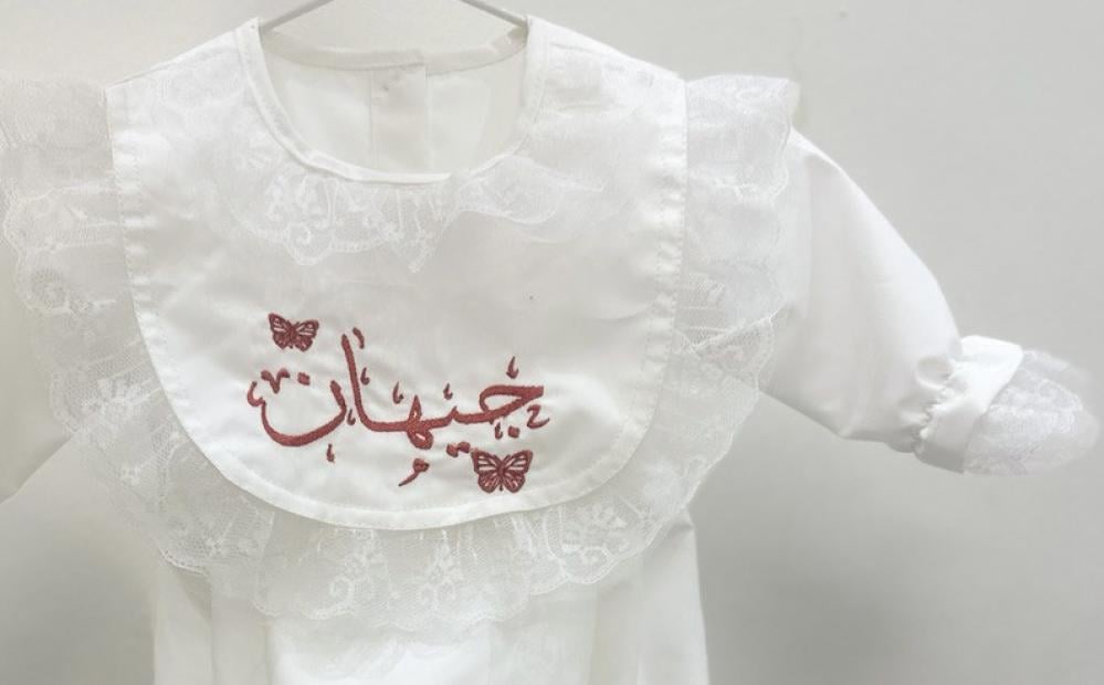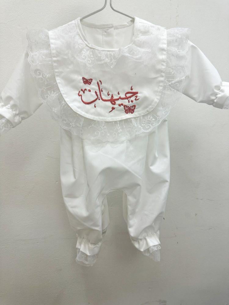 افرول مواليدمزينة بتطريز الاسم بالجزء الأمامي مع امكانية تغير لون التطريزمكونات الطقم : (افرول + قبعة )