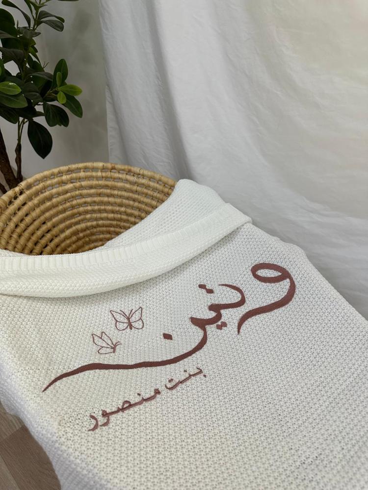 يقدم مطرزات بطانيات مواليد بتطريز فاخر يحمل اسم طفلك، لتضيف لمسة أنيقة ودافئة تضمن له نومًا مريحًا ومظهرًا راقيًا.