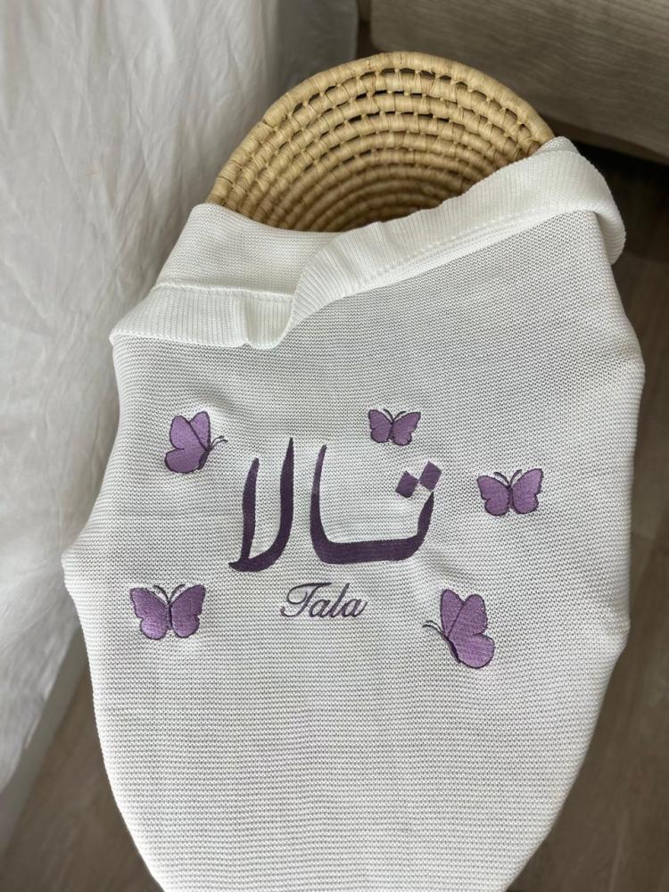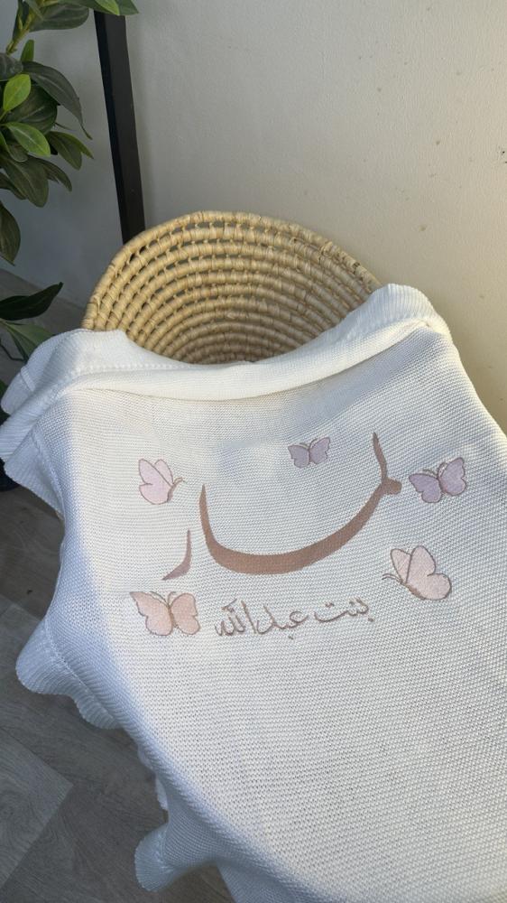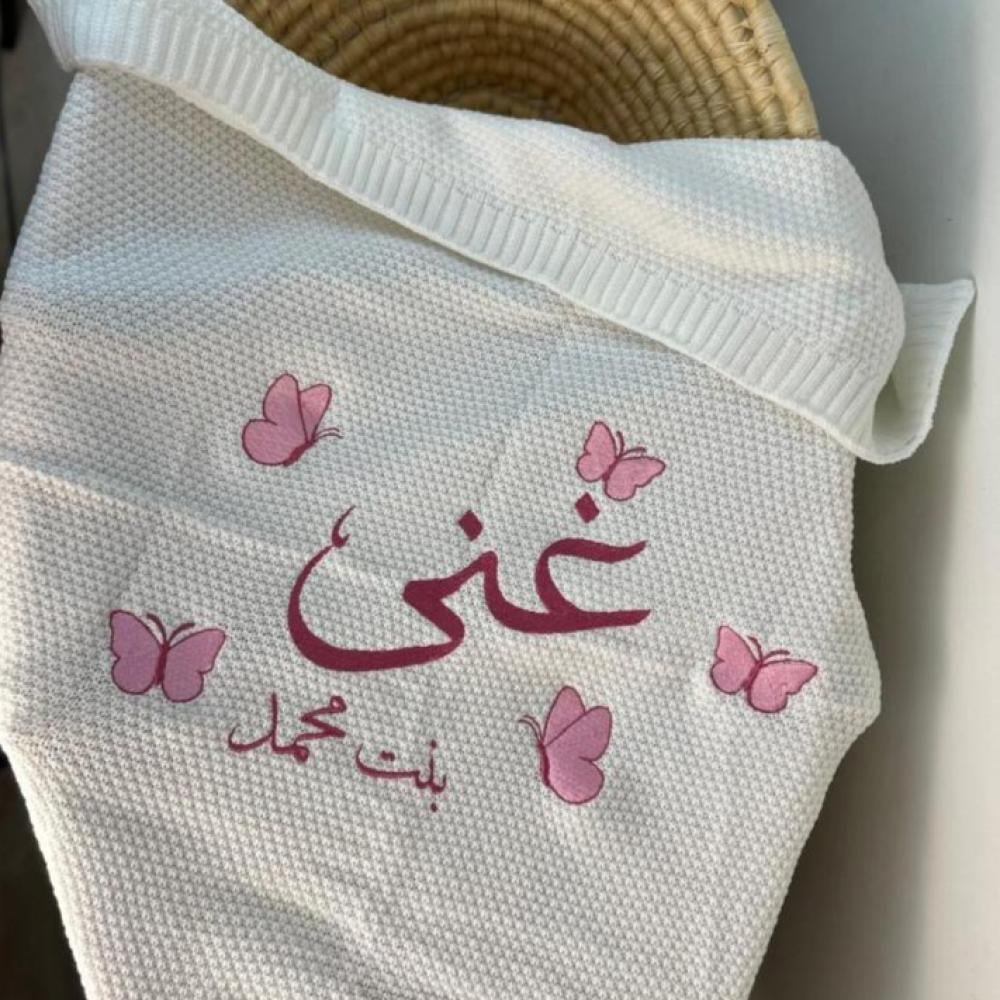 بطانية مواليد مع تطريز الاسم بتصميم فراشات