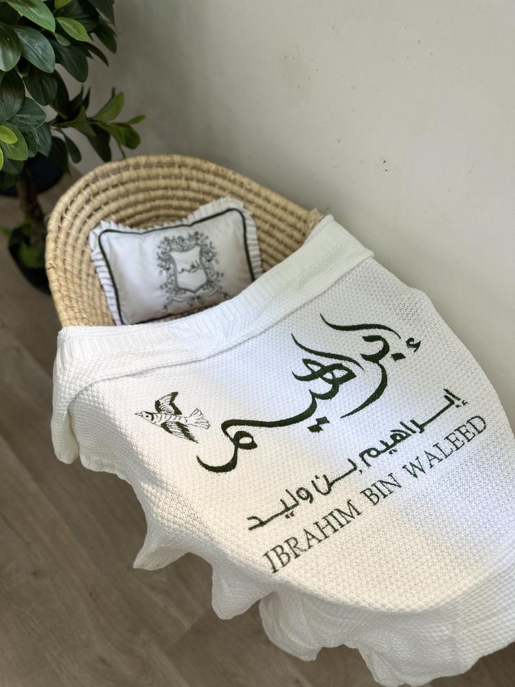 يقدم مطرزات بطانيات مواليد بتطريز فاخر يحمل اسم طفلك، لتضيف لمسة أنيقة ودافئة تضمن له نومًا مريحًا ومظهرًا راقيًا.