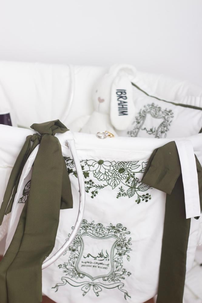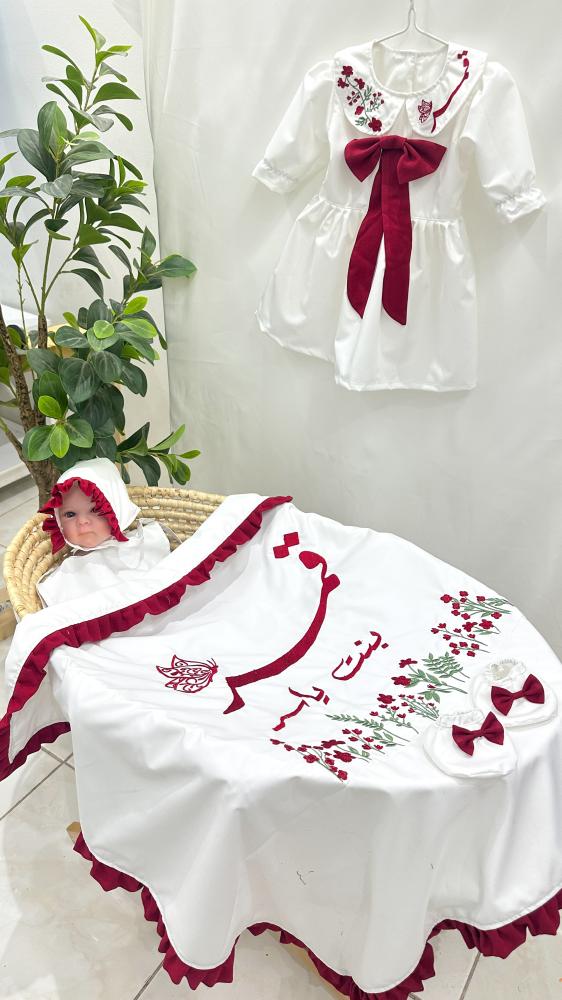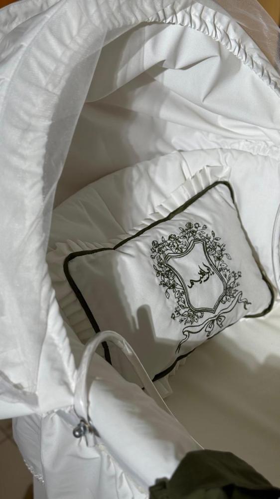 مفرش استقبال مطرز يتميز بتصميم راقٍ ومناسب لاستقبال المواليد الجدد